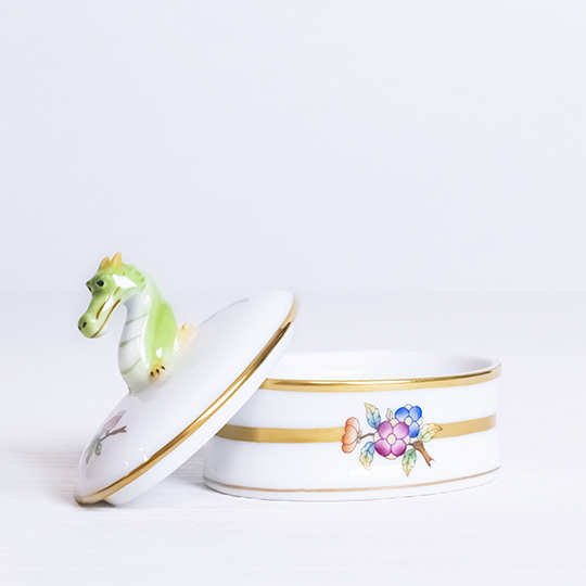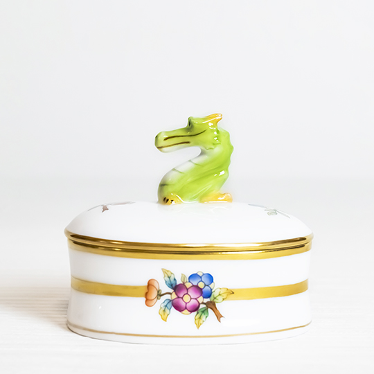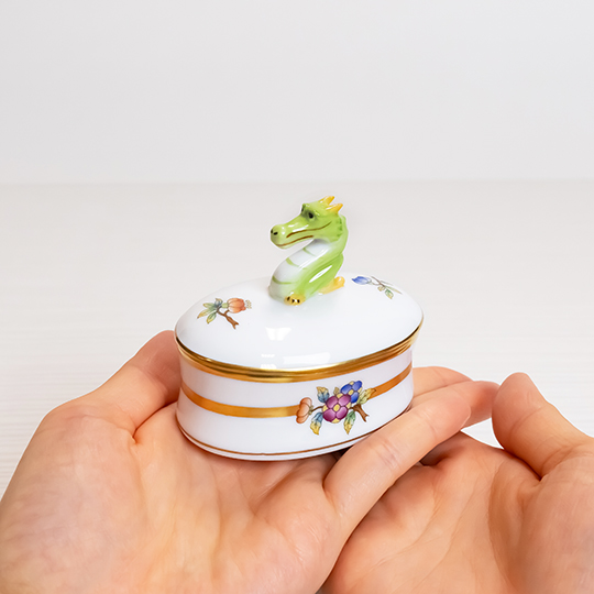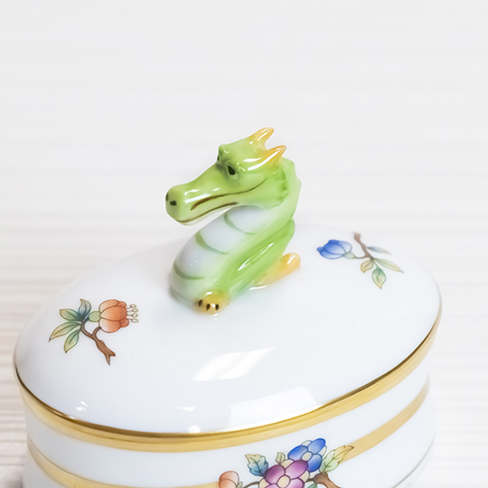 ヘレンドの干支 〜 世界の民話・昔のお話より 〜 の第五作となるたつは、中国の龍窯にまつわるいにしえの話が選ばれました。イヤーズカラーには、お話の中の龍をイメージして、2色で鱗模様を描いた「ネイビー・ターコイズ」が選ばれました。