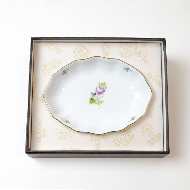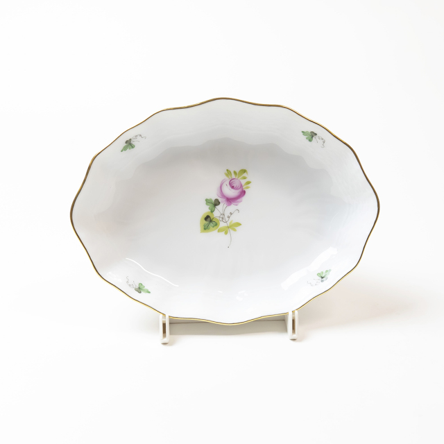 たおやかな一輪の薔薇が白磁に映える優雅なこのパターンは、もとはハプスブルク家の内遣い用の絵柄で、ハプスブルク帝国が終わる1918年までハプスブルク家の門を出ることのない高貴なものでした。