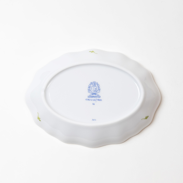 1864年の旧ウィーン窯閉鎖に伴い、皇帝フランツ・ヨーゼフの命を受け継承した絵柄です。絶世の美女とも唄われたハプスブルク家の皇妃エリザベートは、もともとお転婆娘で乗馬好き。因習的なウィーンの宮廷を嫌い、好んで山野連なるハンガリーに滞在しました。自然に囲まれた生活をこよなく愛し、ブダペスト郊外のゲデレ宮殿はお好みの滞在地でした。