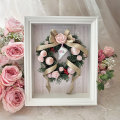 シンプルな白い額の内側は、朝霧舞さんが選んだ淡いピンク色の生地で彩られています。